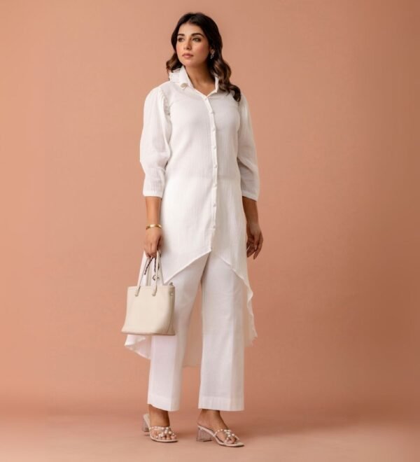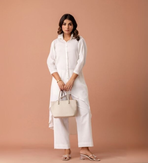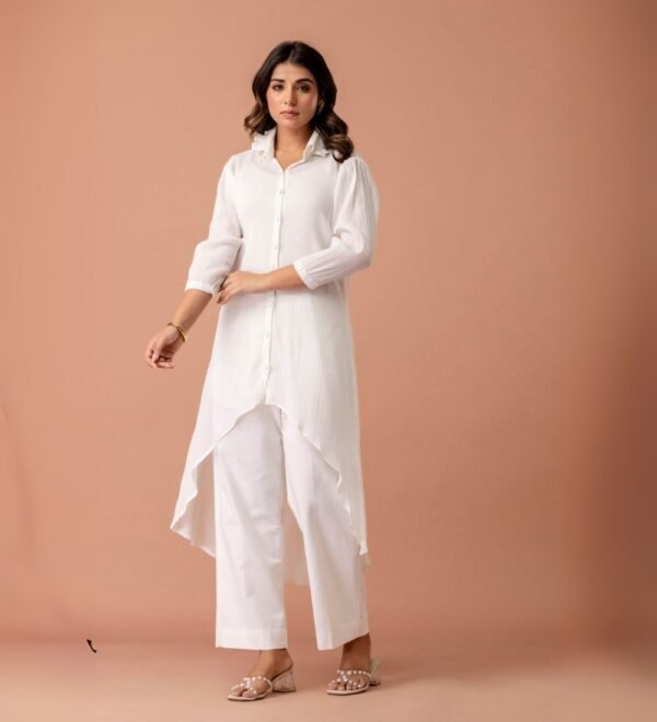 With a sharp straight cut, simple neckline, and soft structure, this kurta set enhances your natural shape without effort. Designed for ease, styled for grace.