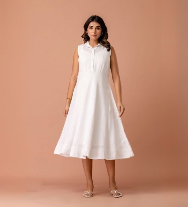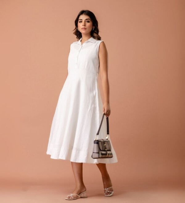 Designed with a wide, flared hemline, clean neckline, and subtle stitch detailing, this dress celebrates simplicity that never goes unnoticed.