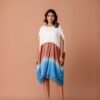 A harmonious blend of sandy neutrals and coastal calm makes this piece a soothing addition to your conscious wardrobe.